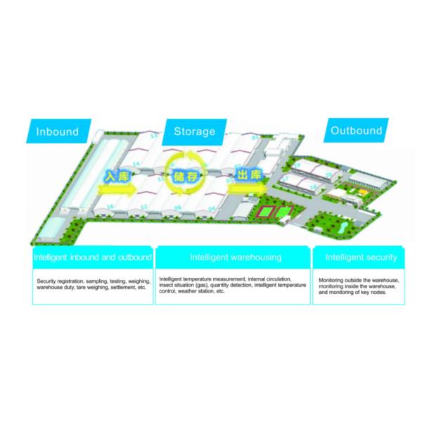 The intelligent grain depot management platform aims to achieve interconnection, business collaboration, and resource sharing. It builds a comprehensive and reliable network system and an intelligent management system covering all aspects of grain depot business and storage management. This platform enables information-based grain depot management, intelligent storage, and scientific decision-making, ensuring the safe storage of grain reserves, accurate quantity, and reliable quality.